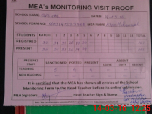 | Attendance Register | Head Teacher | MEA with School | Visit Proof |