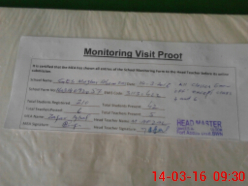 | Attendance Register | Head Teacher | MEA with School | Visit Proof |
