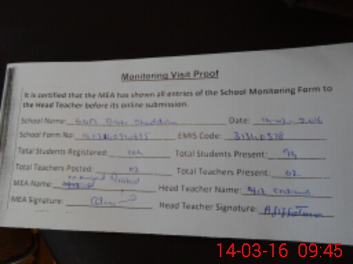 | Certified that this School was Inspected by the Undersigned MEA/DMO Today and the Information Stated Above is as Per Record. | |||||