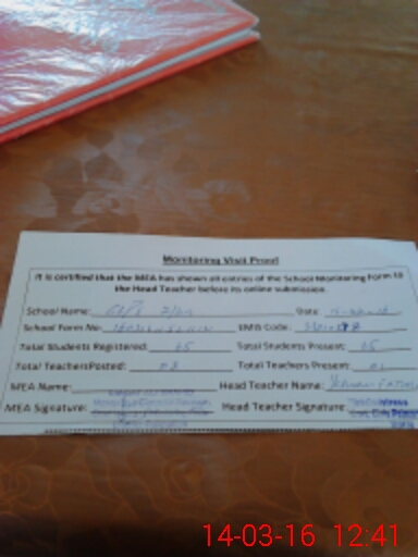 | Attendance Register | Head Teacher | MEA with School | Visit Proof |