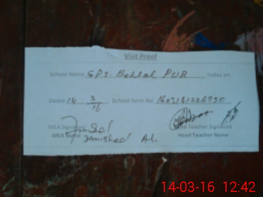| Attendance Register | Head Teacher | MEA with School | Visit Proof |
