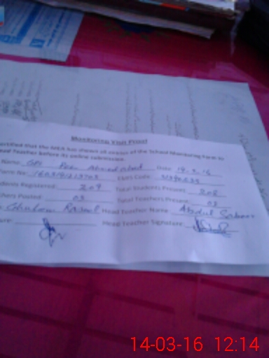 | Attendance Register | Head Teacher | MEA with School | Visit Proof |