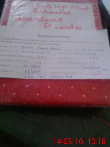 | Attendance Register | Head Teacher | MEA with School | Visit Proof |