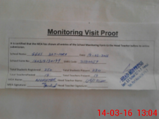 | Attendance Register | Head Teacher | MEA with School | Visit Proof |
