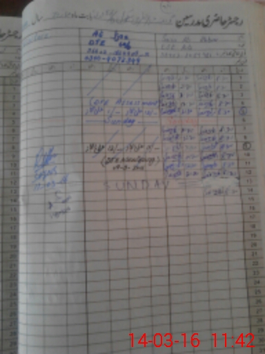 | CNIC | Full Name | Designation | R/C | Absence During Last Calender Month |