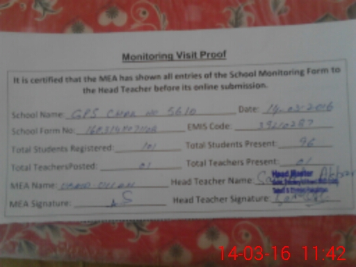 | Certified that this School was Inspected by the Undersigned MEA/DMO Today and the Information Stated Above is as Per Record. | |||||