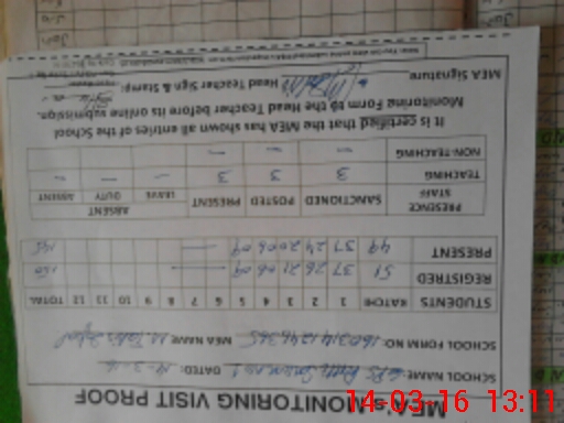 | Attendance Register | Head Teacher | MEA with School | Visit Proof |
