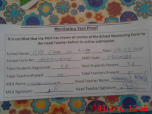 | Certified that this School was Inspected by the Undersigned MEA/DMO Today and the Information Stated Above is as Per Record. | |||||