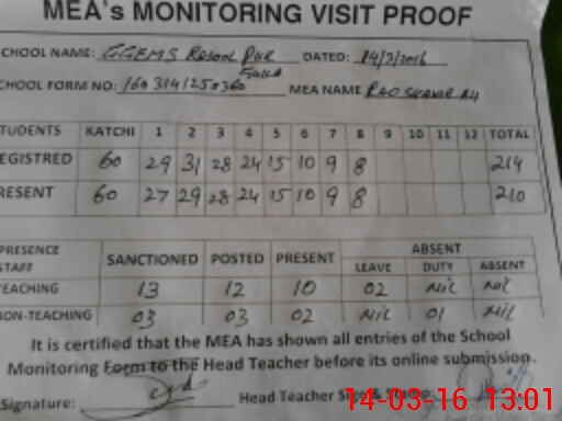 | Certified that this School was Inspected by the Undersigned MEA/DMO Today and the Information Stated Above is as Per Record. | |||||