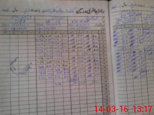 | CNIC | Full Name | Designation | R/C | Absence During Last Calender Month |