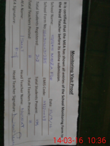 | EMIS Code: 37220047 | Name of School: GGES MIRZA PUR | |||