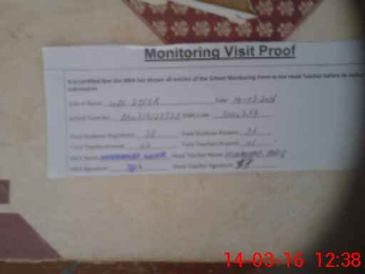 | Attendance Register | Head Teacher | MEA with School | Visit Proof |