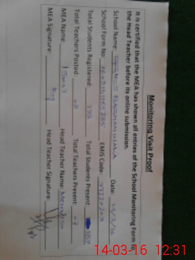 | Attendance Register | Head Teacher | MEA with School | Visit Proof |