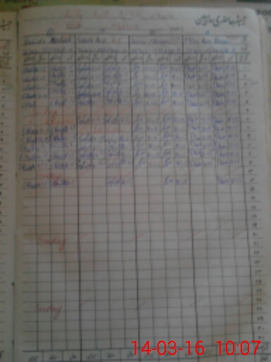 | CNIC | Full Name | Designation | R/C | Absence During Last Calender Month |