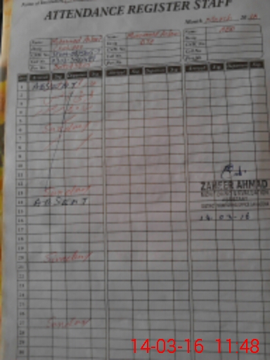 | 38**** | MAs**** | Chokidar | 0 | 29 | 0 | 0 | 0 | 0 | 0 | 0 | 0 | Absent (Un-Authorized) | |
