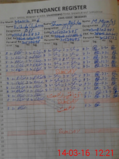 | Name: SH**** PA**** Designation: (School Headmaster's/Headmistress's) PST Phone/Cell Number: 03**** |