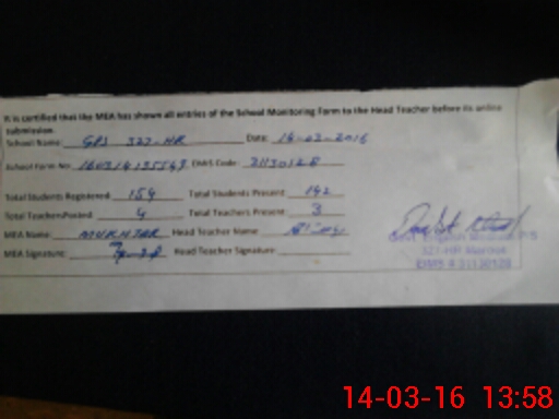 | Attendance Register | Head Teacher | MEA with School | Visit Proof |