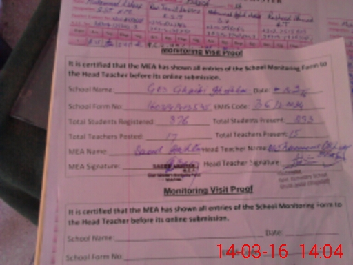 | Attendance Register | Head Teacher | MEA with School | Visit Proof |