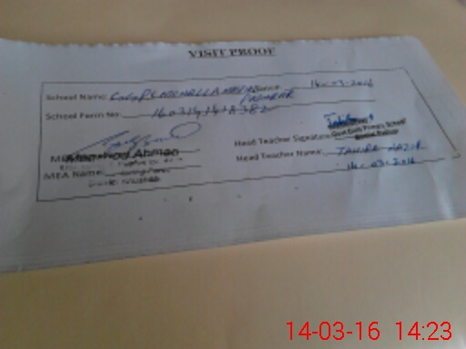 | Attendance Register | Head Teacher | MEA with School | Visit Proof |