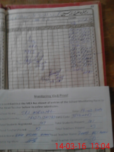 | Attendance Register | Head Teacher | MEA with School | Visit Proof |
