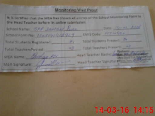 | Certified that this School was Inspected by the Undersigned MEA/DMO Today and the Information Stated Above is as Per Record. | |||||