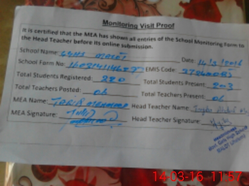 | Certified that this School was Inspected by the Undersigned MEA/DMO Today and the Information Stated Above is as Per Record. | |||||