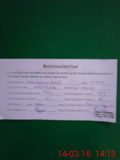 | Certified that this School was Inspected by the Undersigned MEA/DMO Today and the Information Stated Above is as Per Record. | |||||