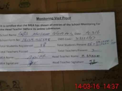 | Certified that this School was Inspected by the Undersigned MEA/DMO Today and the Information Stated Above is as Per Record. | |||||
