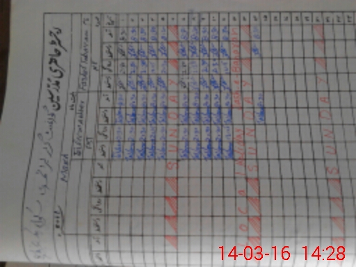 | CNIC | Full Name | Designation | R/C | Absence During Last Calender Month |