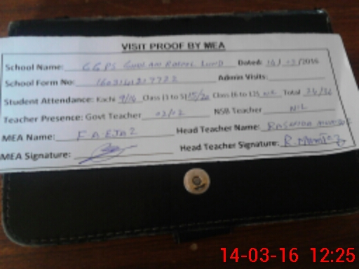 | Attendance Register | Head Teacher | MEA with School | Visit Proof |