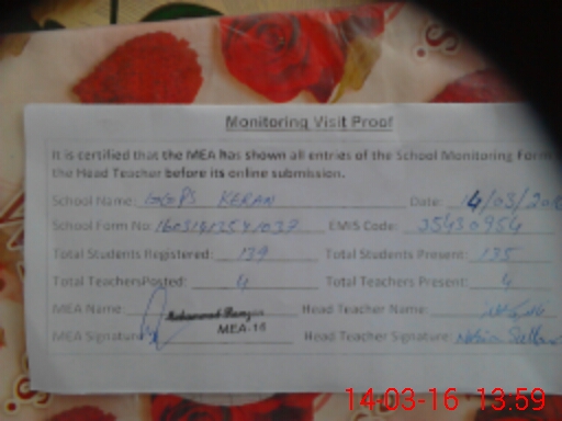 | Certified that this School was Inspected by the Undersigned MEA/DMO Today and the Information Stated Above is as Per Record. | |||||