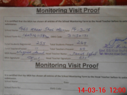 | EMIS Code: 31150171 | Name of School: GHS KHAIR SHAH OTTAR | |||