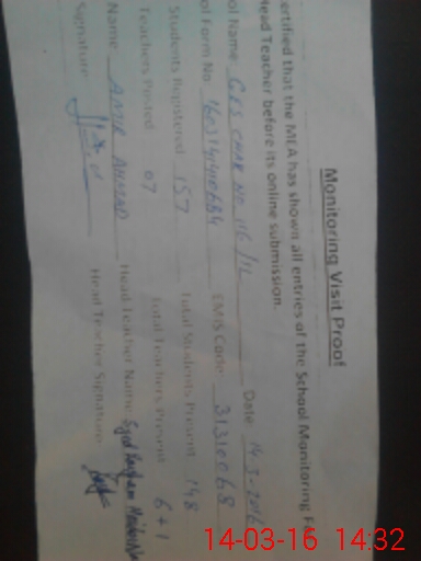 | EMIS Code: 31310068 | Name of School: GES CHAK NO 116/1-L | |||