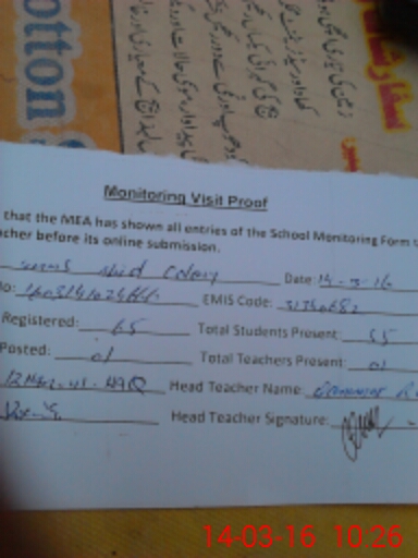 | Certified that this School was Inspected by the Undersigned MEA/DMO Today and the Information Stated Above is as Per Record. | |||||