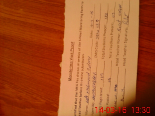 | Monitoring Date: 14-03-2016 | Start Time: 14-03-2016 01:07 PM | End Time: 14-03-2016 01:45 PM | Name of MEA: Mu**** Iz**** UlHa**** | |