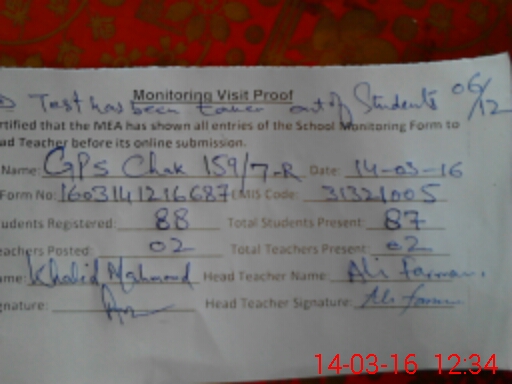 | EMIS Code: 31321005 | Name of School: GES CHAK NO.159/7-R | |||