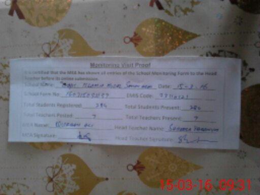 | Attendance Register | Head Teacher | MEA with School | Visit Proof |