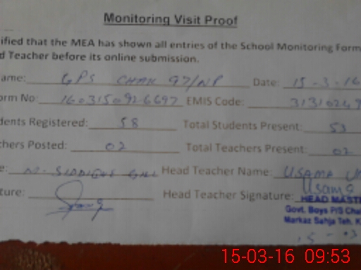| EMIS Code: 31310249 | Name of School: GPS CHAK NO. 97/NP | |||