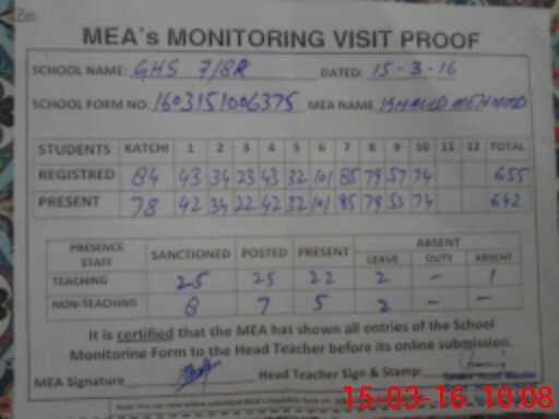 | Certified that this School was Inspected by the Undersigned MEA/DMO Today and the Information Stated Above is as Per Record. | |||||