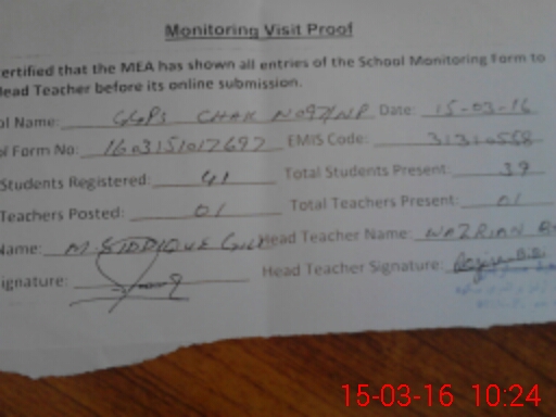 | Attendance Register | Head Teacher | MEA with School | Visit Proof |