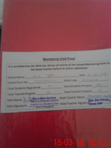 | Attendance Register | Head Teacher | MEA with School | Visit Proof |