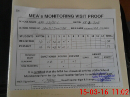 | Attendance Register | Head Teacher | MEA with School | Visit Proof |