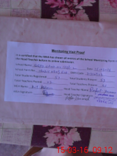 | Attendance Register | Head Teacher | MEA with School | Visit Proof |