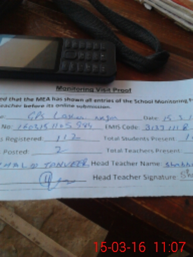 | Attendance Register | Head Teacher | MEA with School | Visit Proof |