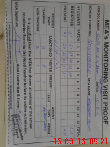 | Attendance Register | Head Teacher | MEA with School | Visit Proof |