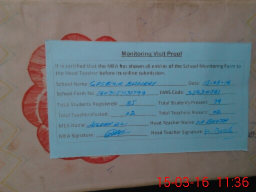 | Attendance Register | Head Teacher | MEA with School | Visit Proof |