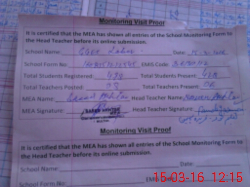| Certified that this School was Inspected by the Undersigned MEA/DMO Today and the Information Stated Above is as Per Record. | |||||