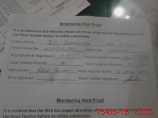 | Attendance Register | Head Teacher | MEA with School | Visit Proof |
