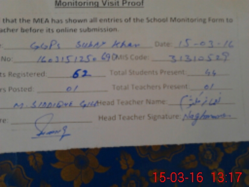 | EMIS Code: 31310529 | Name of School: GGPS SUBAY KHAN | |||