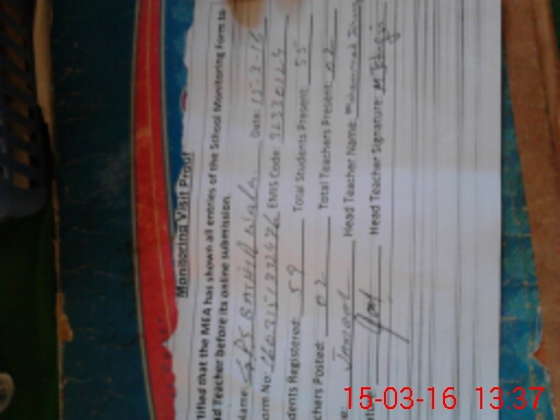 | Attendance Register | Head Teacher | MEA with School | Visit Proof |